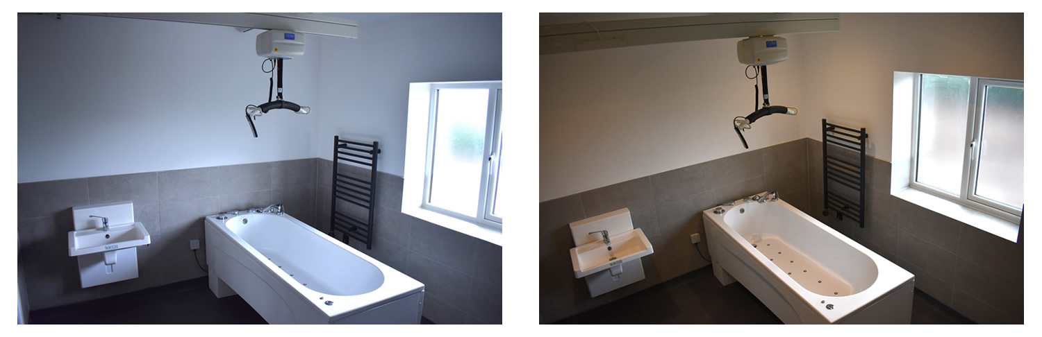 The accessible bathroom was equipped with a rise-and-fall sensory bath, rise and fall basin, and rise and fall changing plinth to meet her daily care needs. To enhance comfort and convenience, underfloor heating was installed in the therapy room, and air conditioning was added to both the adapted bedroom and therapy room to maintain a consistent and comfortable temperature, essential for the client's wellbeing.