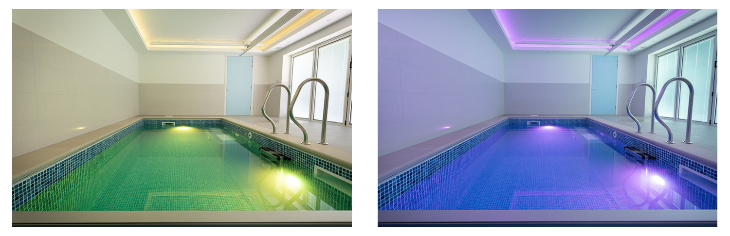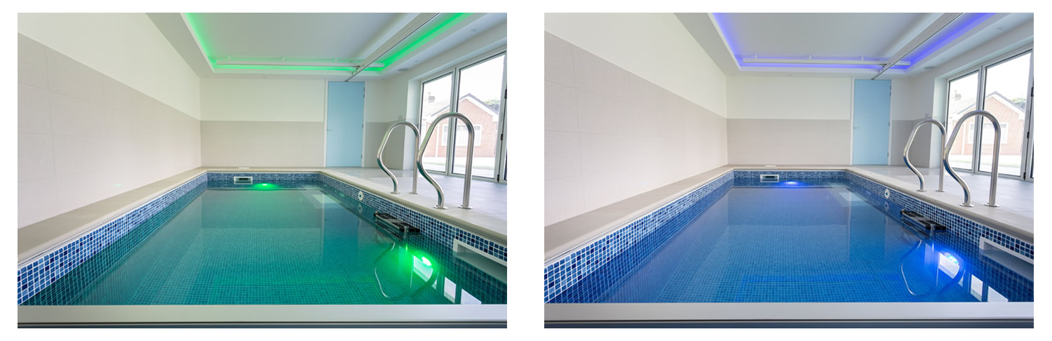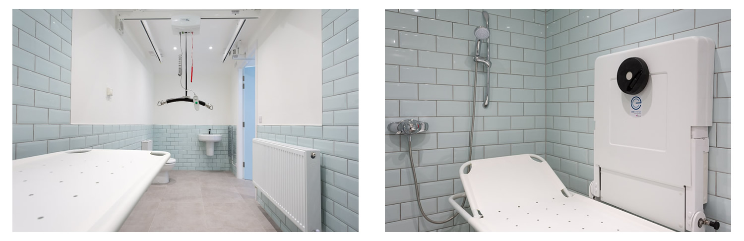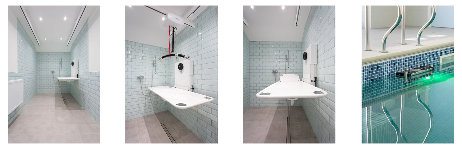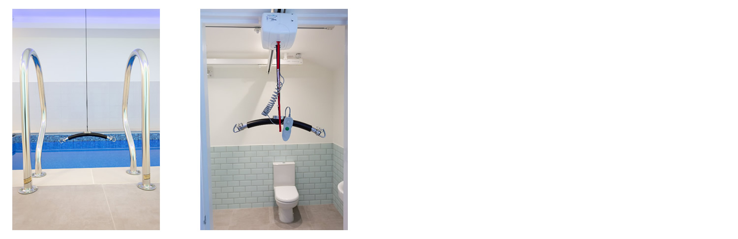 A full hoisting system was installed with seamless integration throughout the space, ensuring safe and easy transfers between the pool, the adapted wet room, and the changing area. To enhance the therapeutic environment, sensory LED ceiling lighting was installed, creating a calming and engaging atmosphere tailored to the user's needs.